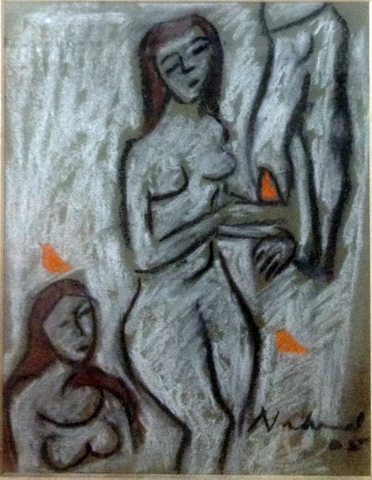 Nahid Raza is a feminist painter. A graduate of the Central Institute of Arts and Crafts (CIAC in 1970) she is now a Principal at the same college. She held her first exhibition the same year, at the Goethe Institute. In the 80s Nahid’s work largely dealt with Baloch Chawkandi Tombs. With time the artist went on to develop a new style dealing largely with the theme of womanhood. She has participated in several exhibitions in Pakistan and abroad and her work has been vastly featured in magazines and art publications including Dr. Akbar Naqvi’s Image and Identity as well as Pioneering perspectives by Niilofur Farrukh.