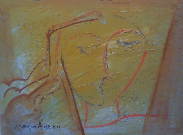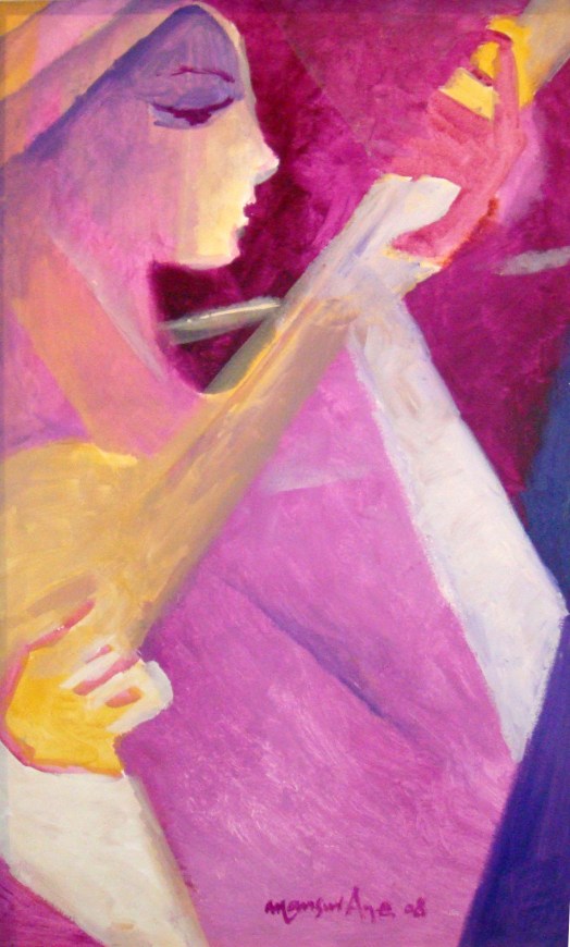 Mansur Aye was born in 1941 and passed away in the year 2008. In his lifetime the artist executed several paintings, some of the themes included: Moon-faced girls, stilll life, portraits of women and musicians at work. The artist was prolific and worked in pencil drawings, brush drawing, chemical drawings, water colour, mixed media, acrylic and oil paints. Mansur Aye the artist was self taught and had his first exhibition in Karachi at Karachi Arts Council in 1962.