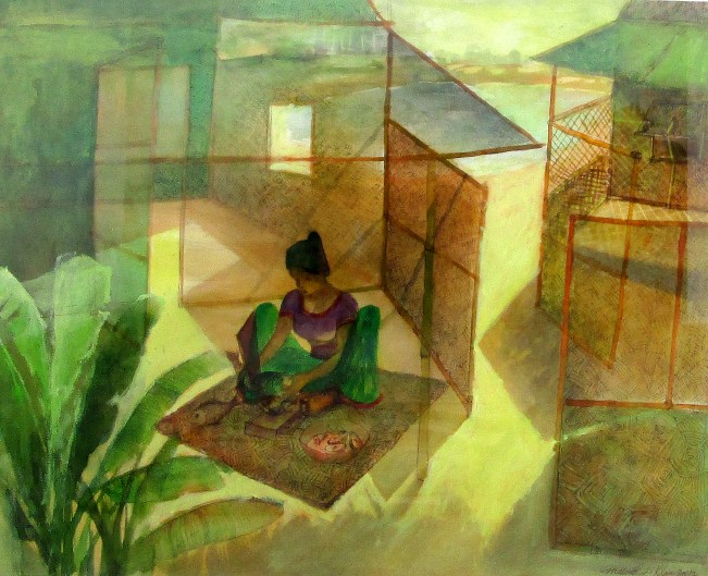 Masood A Khan (born in Kushtia North Bengal) studied English and Economics and later obtained a certificate at Mashkoor School of Art. He is a known watercolourist known for his individual style of creating thin transparent layered washes of watercolour on paper. The artist has won first prize at Italy’s Biennale of Chianciano, an international art festival – and works primarily with ink, charcoal, acrylic and silk paint on wasli. His work has been exhibited widely in Pakistan and internationally.