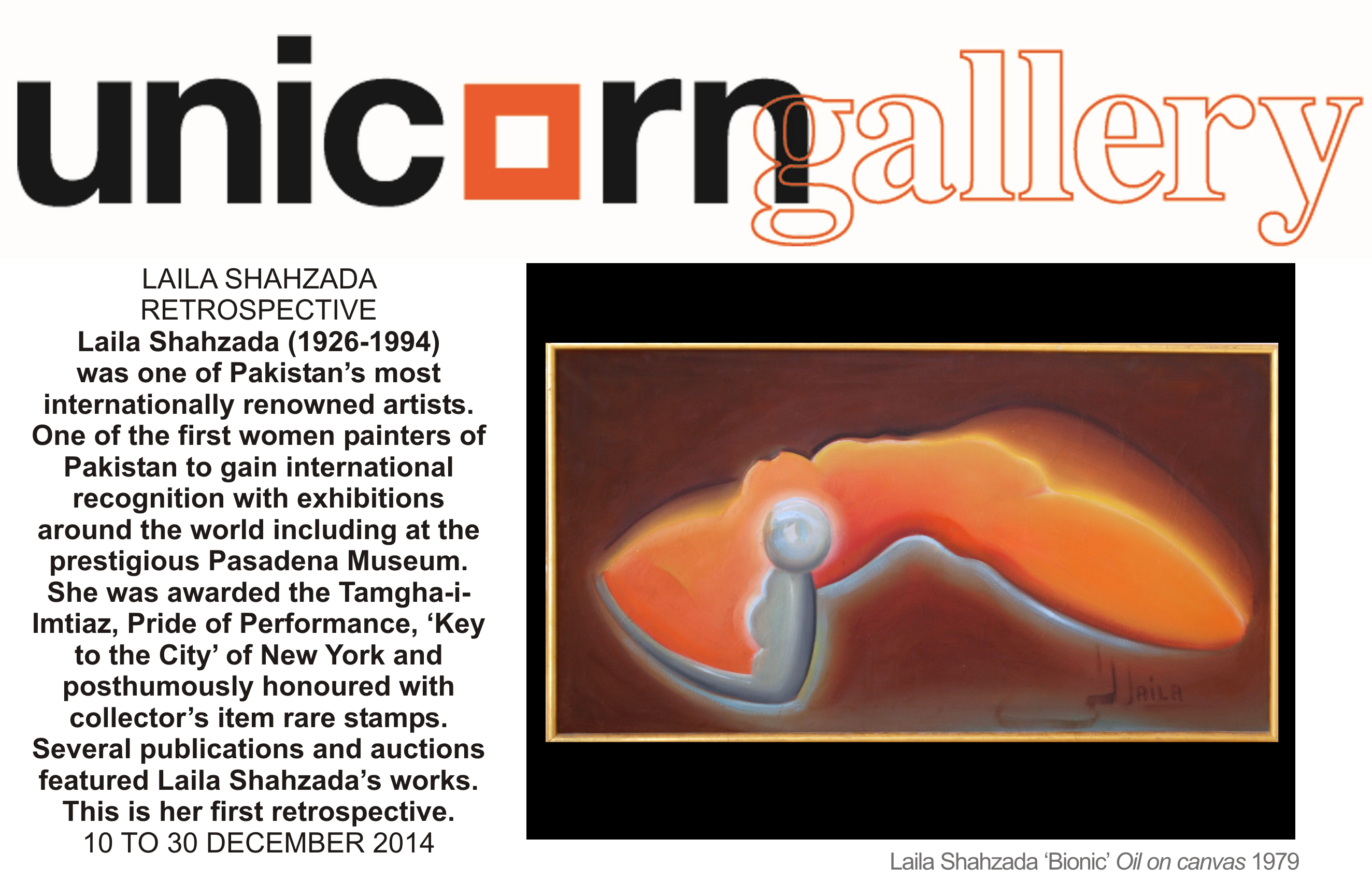 Unicorn Gallery is pleased to present a retrospective exhibition of the late Master artist Laila Shahzada – a pioneer of modern art painting in Pakistan