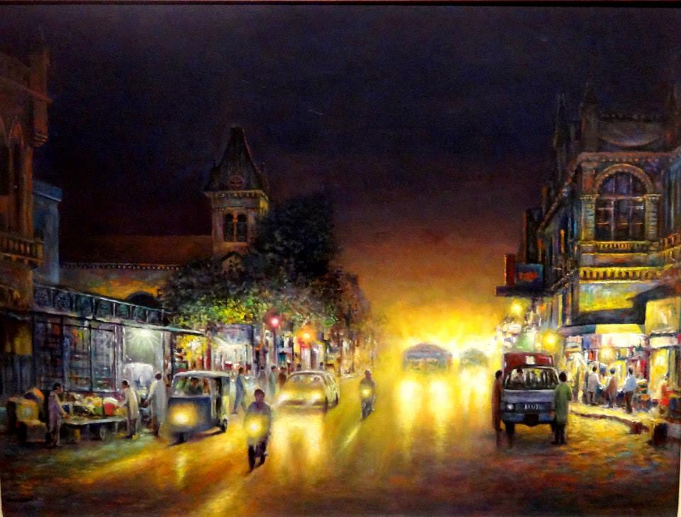 Hanif Shahzad is a senior painter best known for his cityscape paintings of Karachi. The artist has participated in a number of exhibitions and enjoys immense popularity amongst art collectors. Hanif Shahzad is a Karachi School of Art graduate and won first prize in a KSA competition in 1986. The artist’s large oil on canvas paintings of old Karachi have been written about extensively in major art publications.